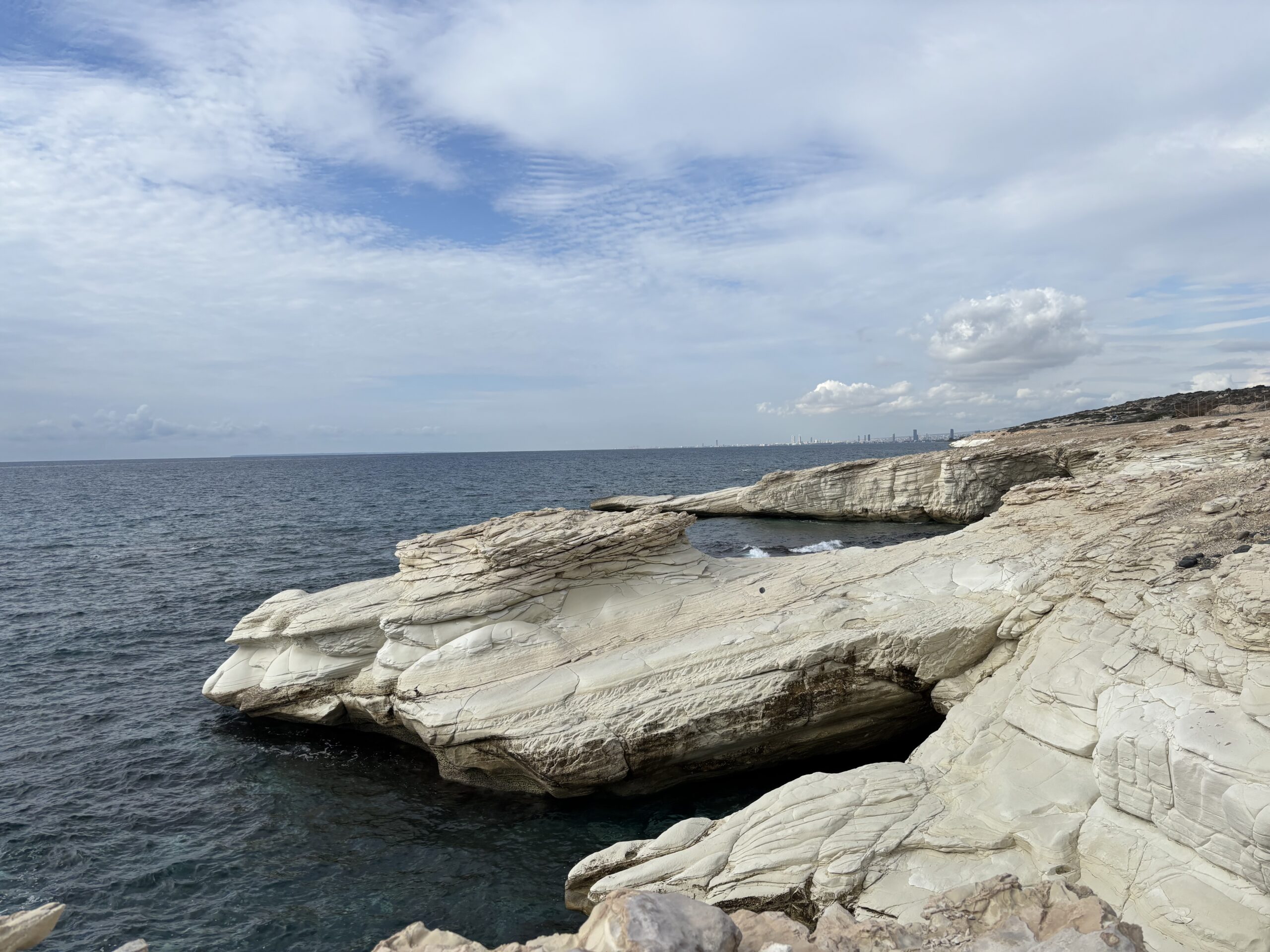 Na sobotę zaplanowaliśmy transfer do Nikozji z przystankami przy najpiękniejszych miejscach wybrzeża: Skale Afrodyty, białych skałach, klifach z grotami i malowniczych plażach. Wjazd do Nikozji przywitał nas burzą ⛈️, na szczęście tylko na czas transferu i noclegu.