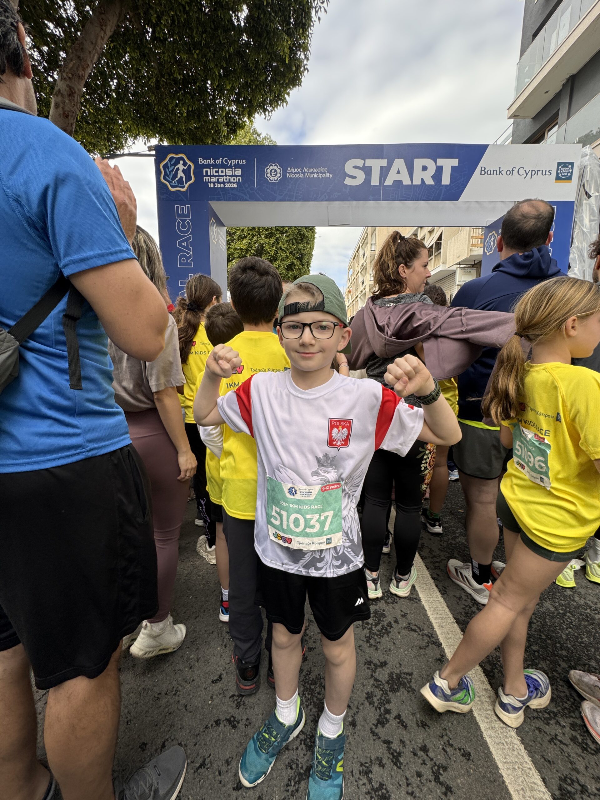 Cieszy też fakt, że na trasie spotkaliśmy sporo biegaczy z Polski. Kacperek dzielnie reprezentował nasze barwy w biegu dla dzieci, biegnąc w koszulce Polska – dumny i uśmiechnięty od startu do mety.