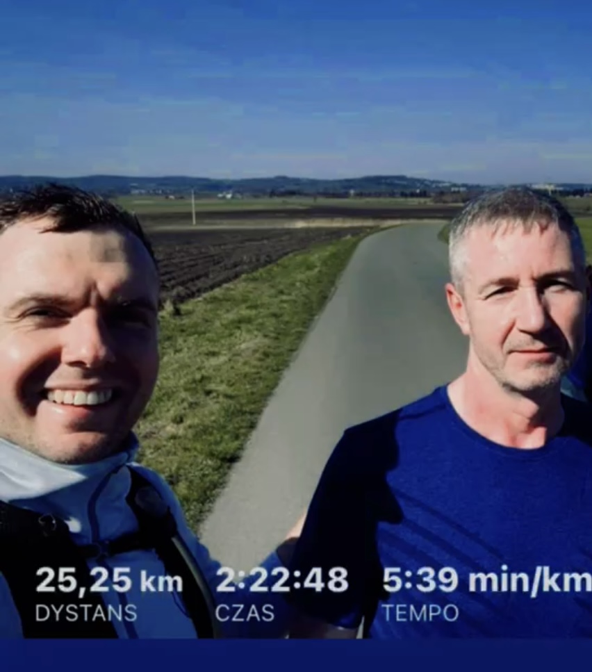 W międzyczasie ukończyłem wcześniej zaplanowany półmaraton w Oleszycach z życiówką 01:43:35. Pomimo nieciekawej pogody, była to świetna impreza, która utkwiła mi w pamięci. Wspomnienia wracają również do pierwszego długiego wybiegania z chłopakami – zaplanowane 25 km, które okazały się naprawdę trudne. Po tym dystansie wszyscy byli zmęczeni, ale perspektywa treningu 30 km za tydzień wydawała się niemożliwa.
